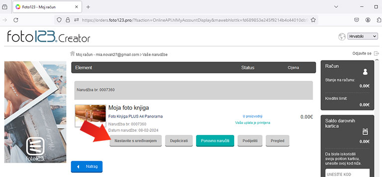 Na web stranici foto123.hr ste putem online dizajna poslali narudžbu za svoj projekt. Nakon što ste poslali narudžbu, primijetili ste grešku u svom projektu koju biste željeli ispraviti. Ovdje napominjemo da mi ne možemo vršiti ispravke u vašem projektu, ali vam možemo omogućiti da to jednostavno i brzo sami učinite.